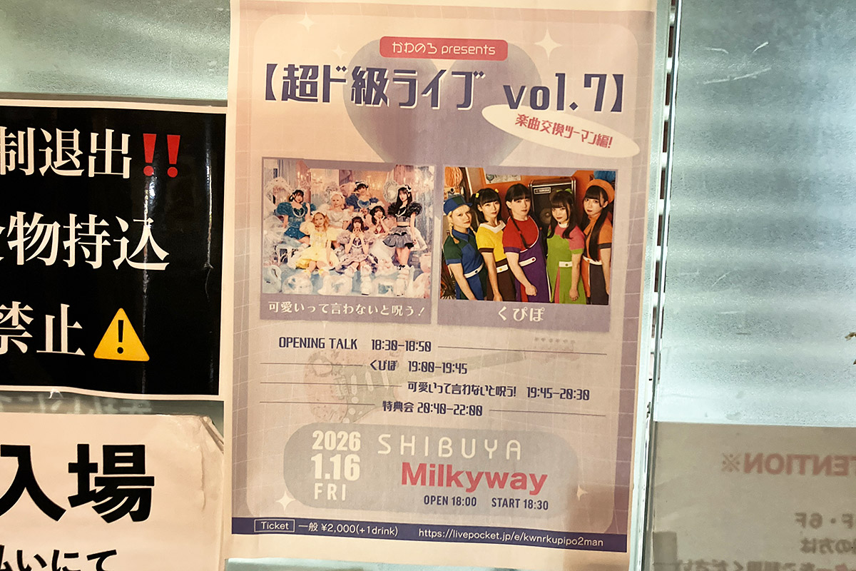 • で、夜は渋谷で「可愛いって言わないと呪う!×くぴぽ」というツーマン